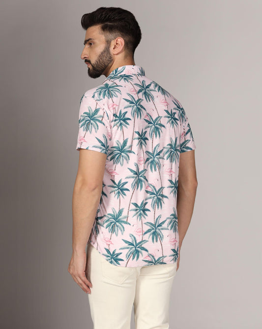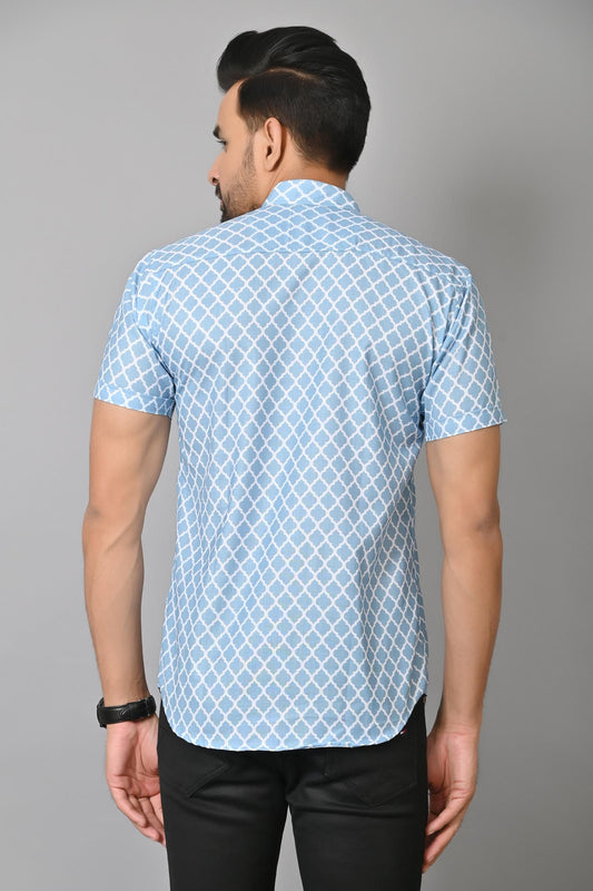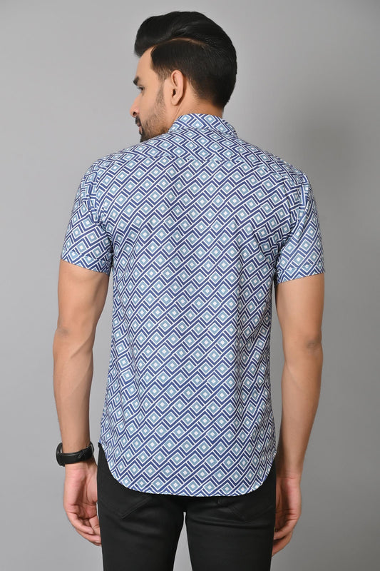 Lycra Printed half Sleeves Regular Fit Men's Casual Shirt