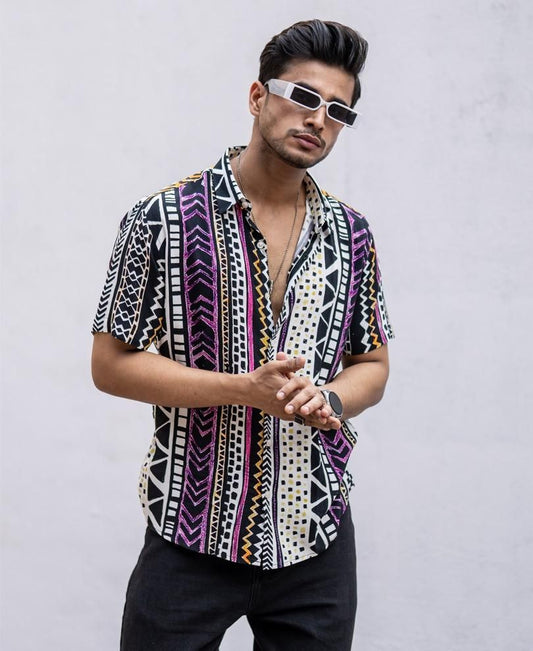 Men's Regular Fit Printed Casual Multicolor Shirt