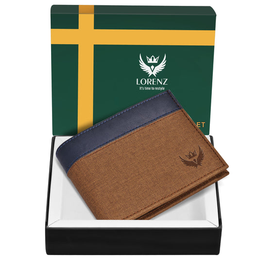 Lorenz Bi-Fold Casual Blue Wallet for Men (Blue, Grey)
