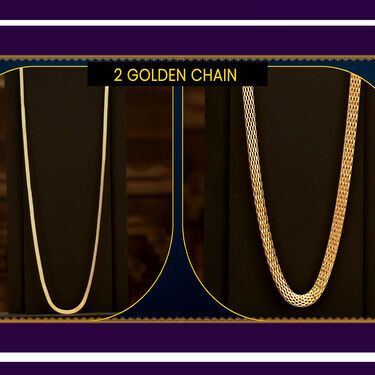 Pack Of 2 Golden Chain With Bracelet + Ring + Digital Watch Combo