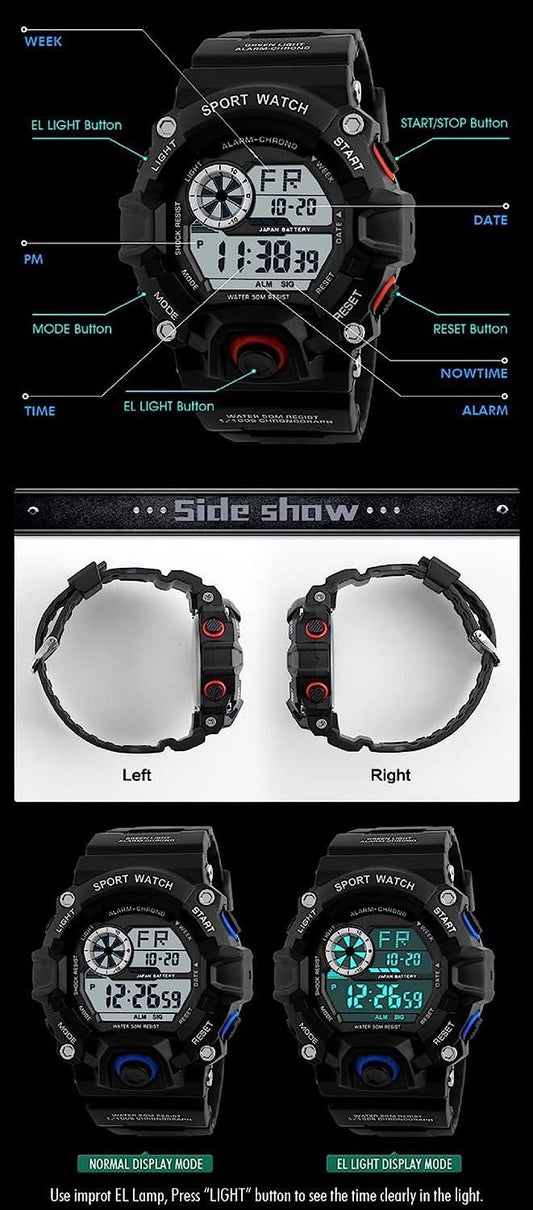 Shockproof Multi-Functional Automatic Digital Sports Watch for Men with Army Strap
