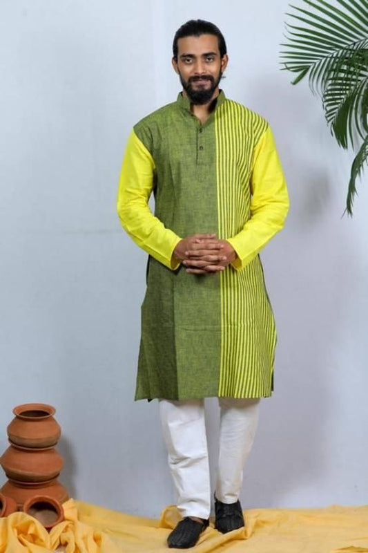 Men's Self-Designed Green Khadi Cotton Kurtas