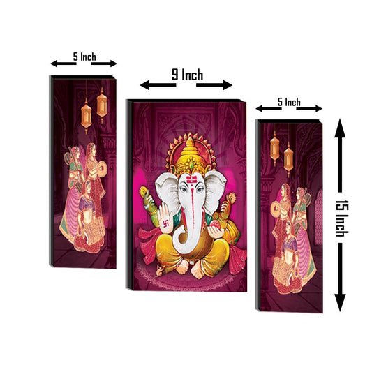Golden Metal Wall Hanging of 9 Variants of Lord Ganesha