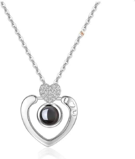 I Love You Light Projection Pendant Necklace with 100 Languages Silver Copper Pendant