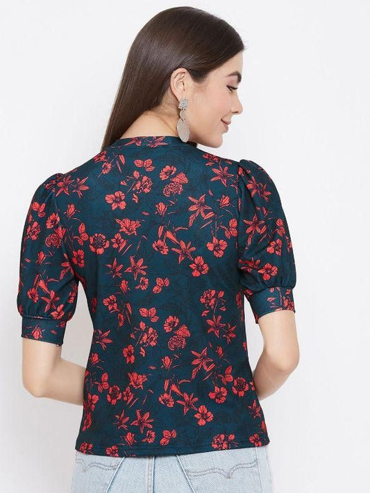 UPTOWNIE Women's Polyester Floral Stretchable High Neck Top